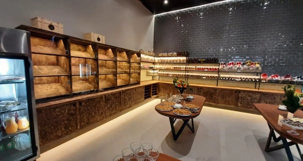Nicho para expor pães com iluminação