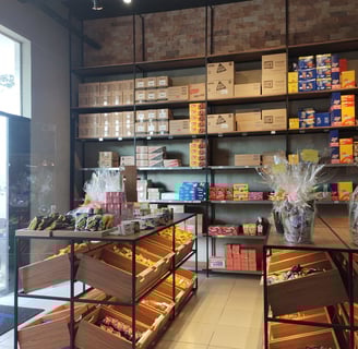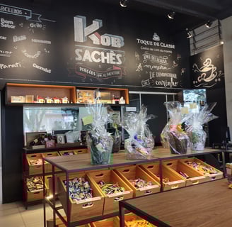 Ilhas e caixas de madeira com iluminação